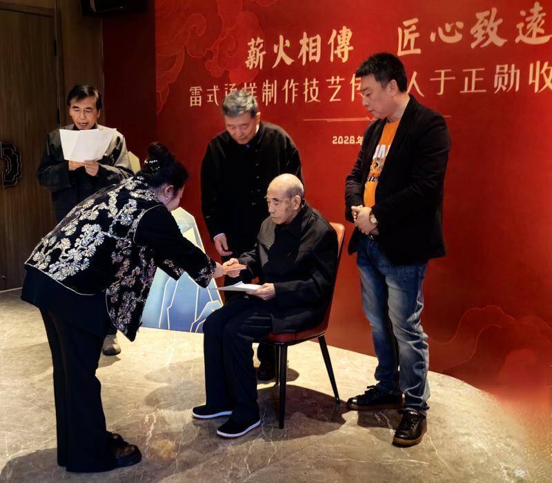 于正勋先生再传弟子雷式烫样非遗传承人邱志刚、张彤,东四胡同博物馆火虫手工团队见证此次拜师仪式,既弘扬了尊师重道的中华美德,更筑牢了非遗传承的活态根基。