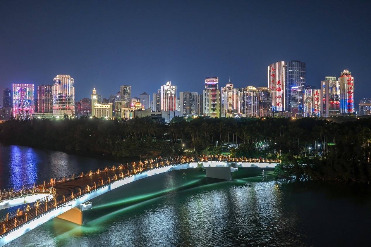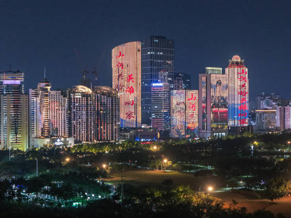 海口滨海大道楼宇灯光秀致敬烈士。海南省退役军人事务厅供图