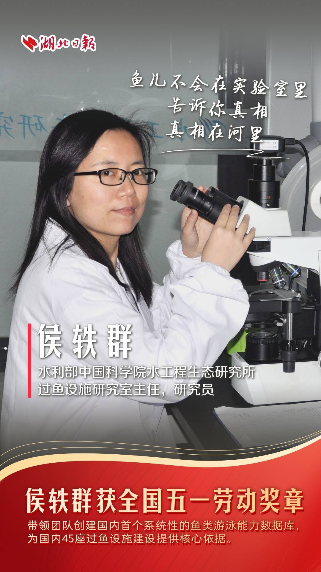 “鱼儿不会在实验室里告诉你真相,真相在河里。”这是侯轶群常挂在嘴边的话。4月28日,2026年全国五一劳动奖表彰名单揭晓,水利部中国科学院水工程生态研究所过鱼设施研究室主任侯轶群荣获全国五一劳动奖章。